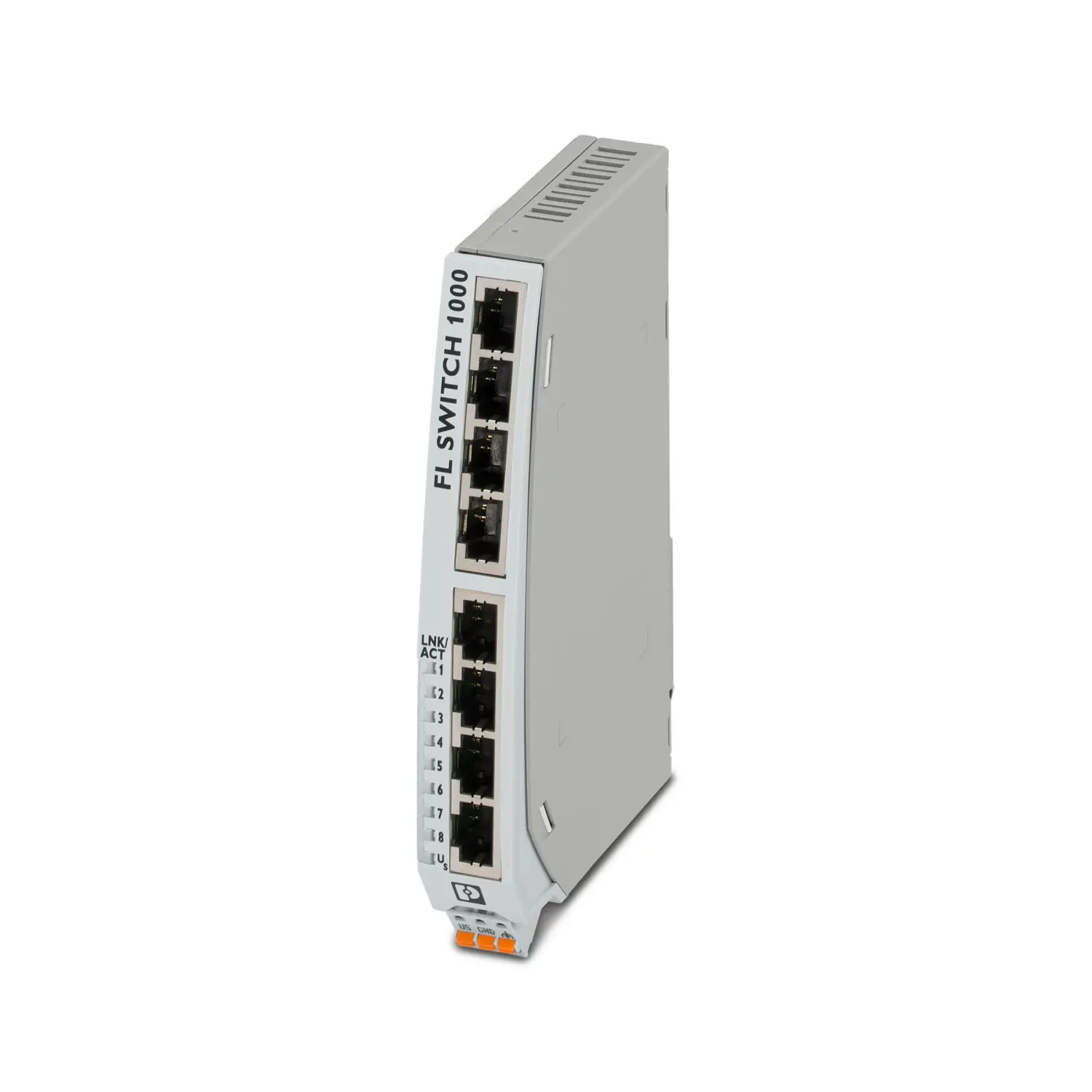 Narrow Ethernet switch, wide temperature range, eight RJ45 ports with 10/100/1000 Mbps on all ports, automatic data transmission speed detection, autocrossing function, and QoS